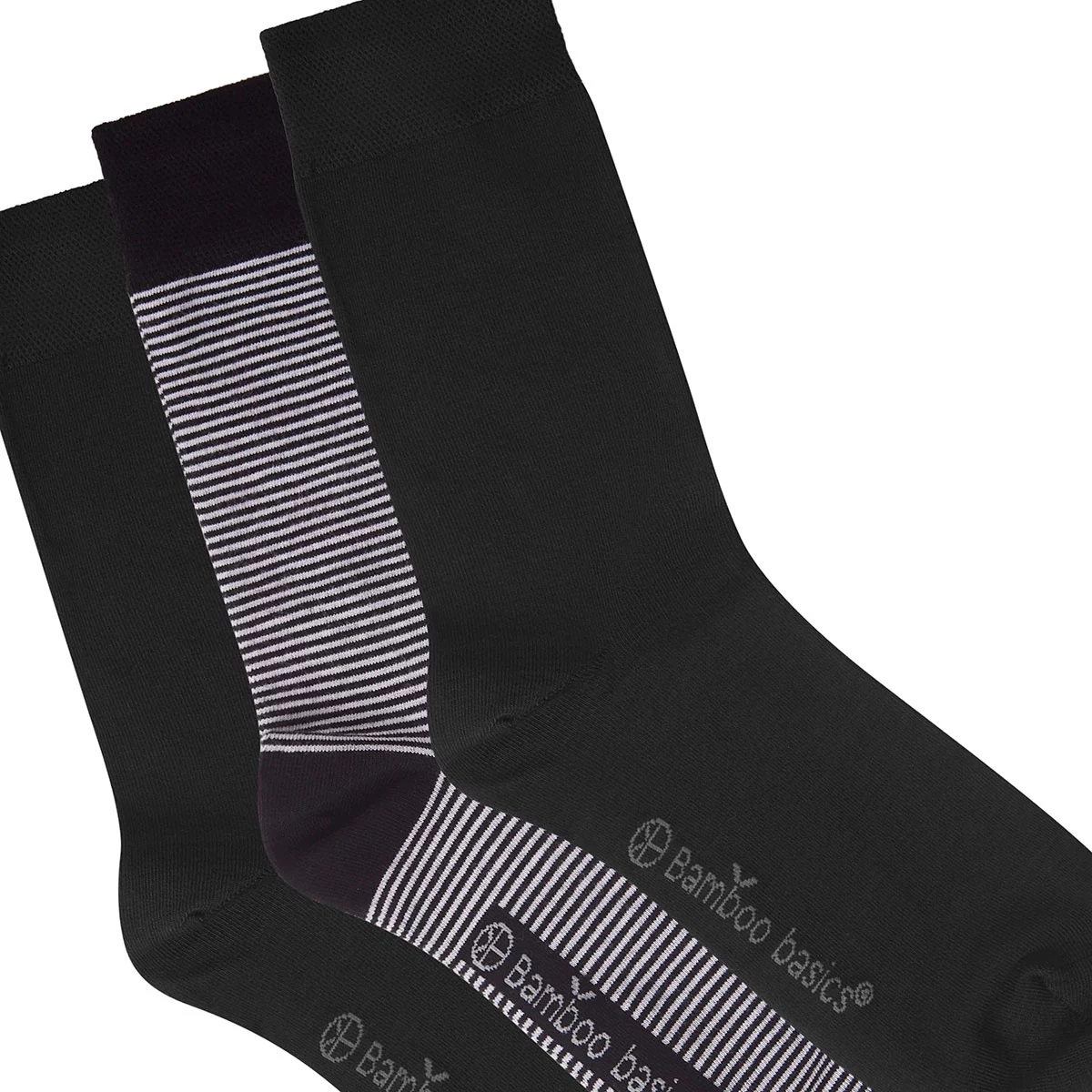 Deze sokken komen uit de collectie van het merk Bamboo Basics. De sokken hebben een fijne pasvorm en zijn super zacht. De zachtheid zal ook na meerdere wasbeurten behouden blijven. De sokken verkleinen de kans op blaren en houden uw voeten langer fris en droog. Het frisse gevoel wordt veroorzaakt door de bamboevezels die goed vocht kunnen absorberen. Het bamboetextiel is heerlijk warm in de winter en ademend in de zomer. De sokken zullen geen problemen opleveren voor mensen met een gevoelige huid. De gekleurde randjes aan de binnenkant van de sok zorgen dat de paren makkelijk bij elkaar te vinden zijn. Deze set bestaat uit drie paar sokken, waarvan twee paar met een zwarte kleur en het laatste paar met witte strepen.